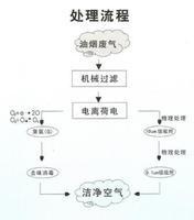 而被捕集。當氣流進入高壓靜電場時,在高壓電場的作用下,油煙氣體電離,油霧荷電,大部分得以降解炭化;少部分微小油粒在吸附電場的電場力及氣流作用下向電場的正負極板運動被收集在極板上并在自身重力的作用下流到集油盤,經(jīng)排油通道排出,余下的微米級油霧被電場降解成二氧化碳和水,最終排出潔凈空氣;同時在高壓發(fā)生器的作用下,電場內(nèi)空氣產(chǎn)生臭氧,除去了煙氣中大部分的氣味。